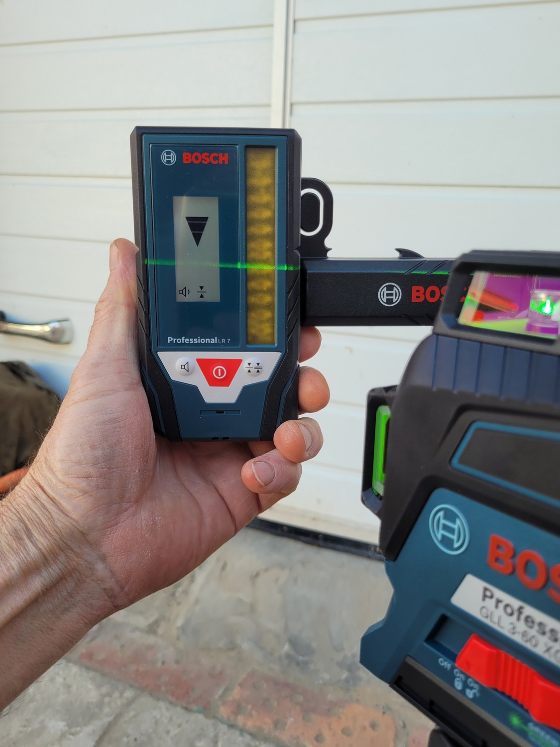 Три зеленых лазерных луча, технология Bosch Green, лазерные линии остаются четко видимыми даже при ярком освещении. Автоматическое выравнивание в диапазоне ±3°, предупреждение при наклоне более 3°. Погрешность измерения ±0.3 мм, рабочий диапазон 30 м, с приемником лазерного излучения до 60 м. Питание от батареек АА.